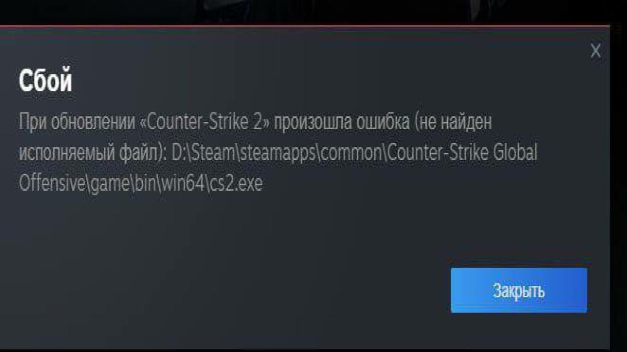 При обновлении CS2 произошла ошибка (не найден исполняемый файл)